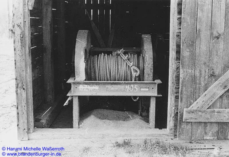 Seilwinde, links dahinter das Gebäude, in dem der