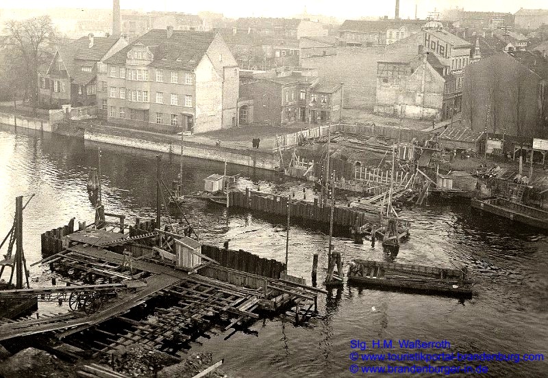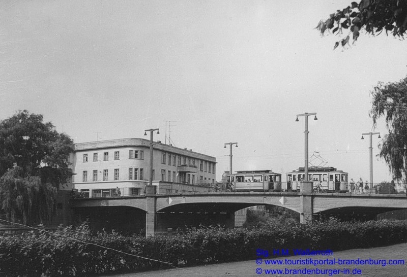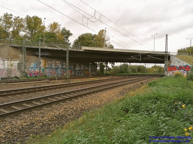 angelegt. Der Bahndamm, rechts von der Havelbrücke
