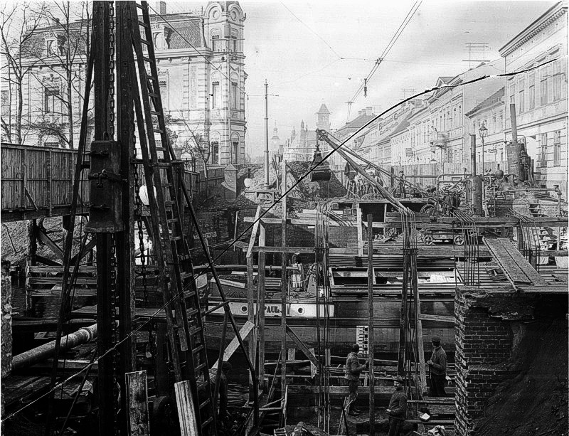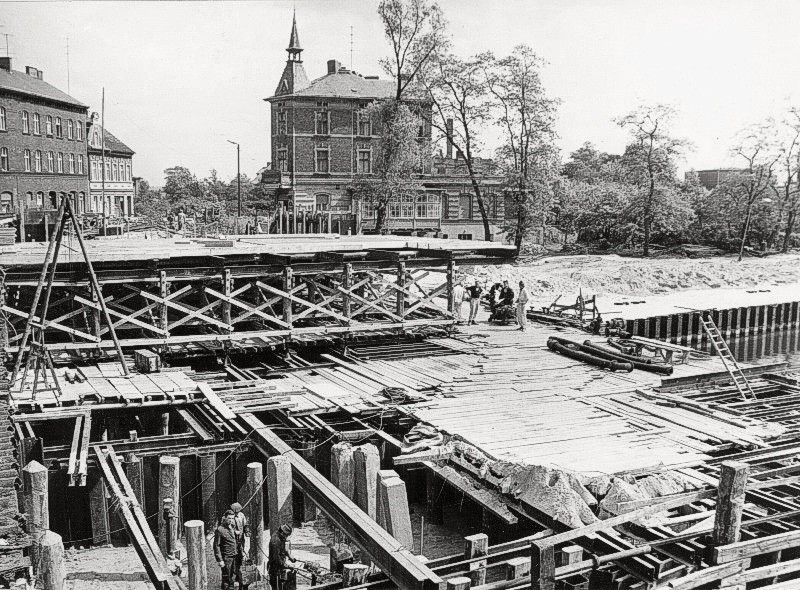 Bau der Städtebahn Brücke am Altstadt Bahnhof über