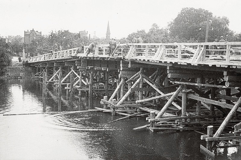 behelfsmäßige Pontonbrücke vom Salzhof zum