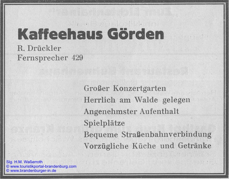 bzw. früher "Kaffeehaus Görden" am Rande des