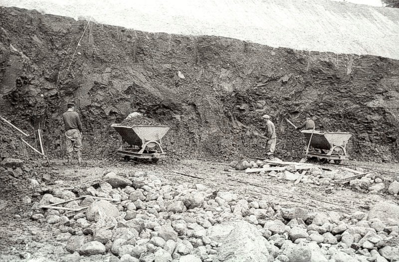 Erst erfolgte der Abbau in Handarbeit mit Picke, Spaten