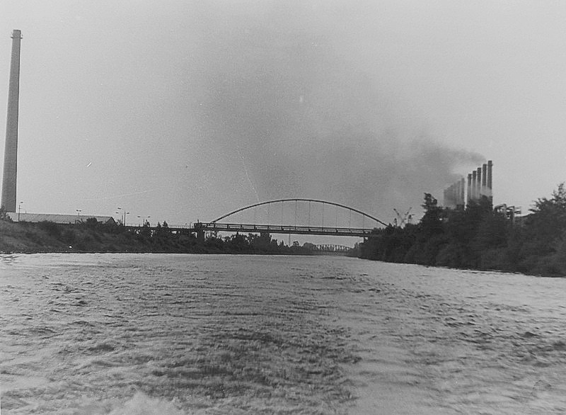 Die Rohrbrücke über den Silokanal, Aufnahme: Kreschel, 1978, Slg. Stadtmuseum Brandenburg