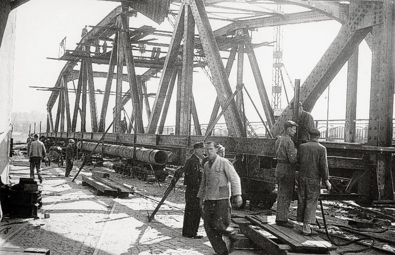 die gesprengte ursprüngliche Brücke wieder aufgebaut,