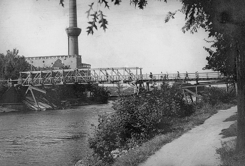 Die Trümmer der Roskower Eisenbahnbrücke wurden nach dem